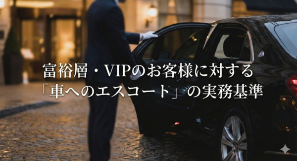 富裕層・VIPのお客様に対する「車へのエスコート」の実務基準 〜日本執事協会が定義する、信頼と安心の時間設計〜 富裕層・VIPのお客様にとって、車へのエスコートは単なる移動補助ではありません。 それは「この人に最後まで任 … 続きを読む 富裕層・VIPのお客様に対する「車へのエスコート」の実務基準